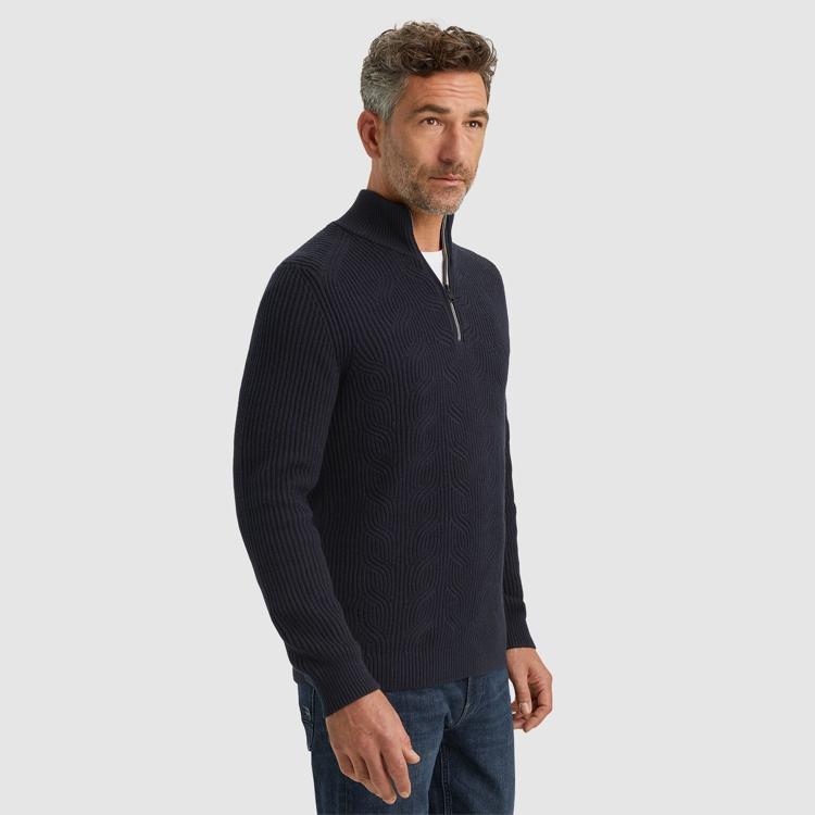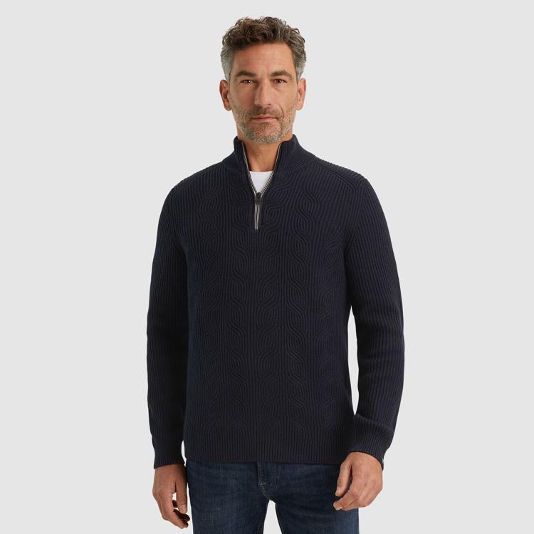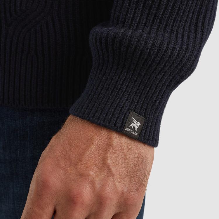Ervaar het comfort van de Vanguard Trui VKW2409326, ontworpen voor de man die houdt van een veelzijdige look. Deze trui met een halve rits en een klassieke ronde hals is uitgevoerd in een stijlvol donkerblauw kabelpatroon. De lange mouwen maken het een perfecte keuze voor zowel een ontspannen dag thuis als een informele zakelijke bijeenkomst.