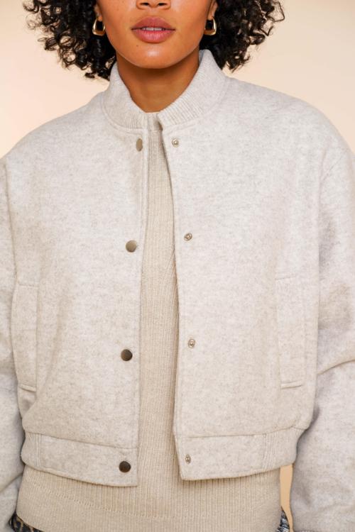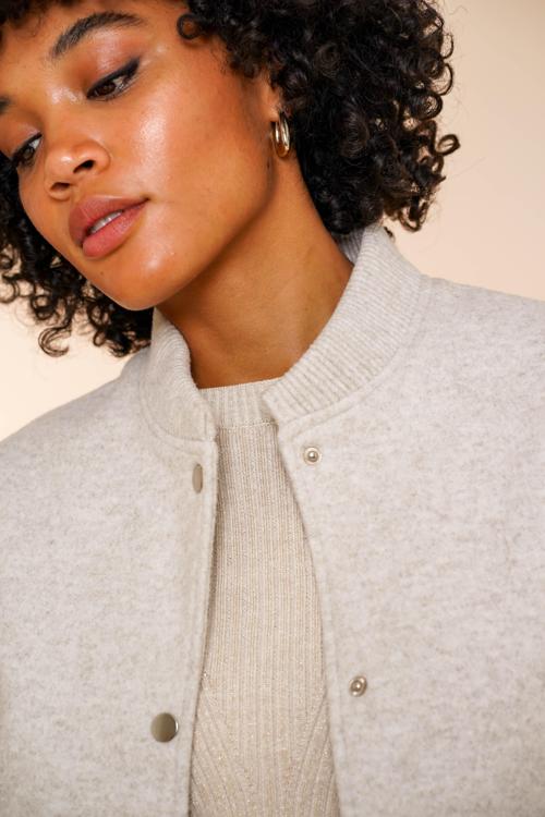Gemaakt van een hoogwaardige mix van 90% polyester en 10% viscose, biedt deze jack een heerlijk draagcomfort en duurzaamheid. De stof voelt zacht aan op de huid. Kenmerkende ribdetails bij de hals, mouwen en zoom geven een eigentijdse twist.