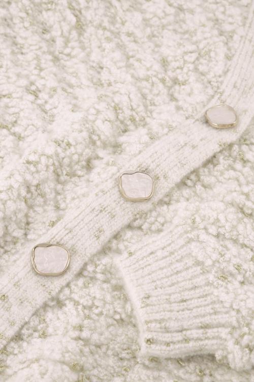 Dit vest in de kleur Kit past perfect binnen de kleurenpaletten van de collectie, zoals de rijke tinten Merlot en Dark Blue. Deze neutrale kleur maakt het vest makkelijk te combineren met andere items uit je garderobe. De viscosemix zorgt voor een zacht en soepel gevoel op de huid, terwijl het metallic garen een subtiele glans toevoegt. Dit maakt het vest net dat beetje extra speciaal, zonder in te boeten aan comfort. Dit vest is een veelzijdige musthave die je zowel casual als chic kunt dragen. Of je het nu combineert met een blouse voor op kantoor of draagt over een jurk tijdens een avondje uit, de Iris chunky glitter cardigan biedt eindeloos veel mogelijkheden om je look mee af te maken.