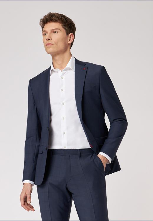 Ervaar de verfijnde elegantie en het comfort van dit Roy Robson Colbert. Deze klassieker biedt een regular fit en is perfect voor diegene die kwaliteit op prijs stelt. De subtiele ruit in de donkerblauwe stof voegt tijdloze klasse toe, ideaal voor zowel zakelijke bijeenkomsten als feestelijke gelegenheden. Je ziet jezelf al staan op die elegante receptie, omringd door goede vrienden, terwijl je geniet van een goed glas wijn.