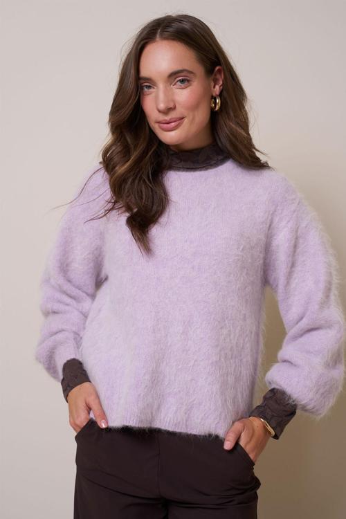 De Lisette pullover is een veelzijdige toevoeging aan je garderobe. Combineer hem met een elegante broek zoals de Lexie denim trousers voor een casual, maar stijlvolle uitstraling. De zachte kleur Lila en de luxe afwerking maken deze trui perfect om je wintergarderobe een frisse en vrouwelijke touch te geven.