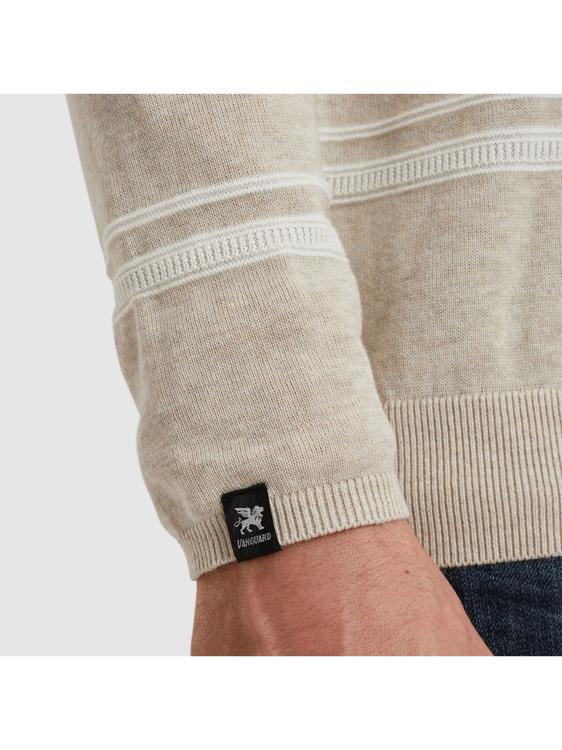 Ervaar de veelzijdigheid van de Vanguard Trui VKW2502302. Deze herentrui combineert een tijdloze, ronde hals met een verfijnd streeppatroon in zachte neutrale tinten. Of je nu uitkijkt over de drukke stad vanuit je kantoor of ontspannen met vrienden afspreekt voor een koffie, dit item past perfect bij elke setting.