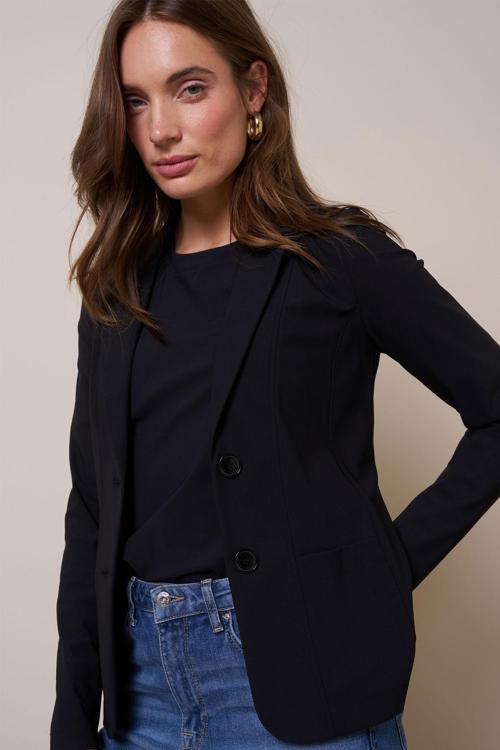 De blazer is vervaardigd uit een hoogwaardige mix van 73% polyamide en 27% Elastaan, wat zorgt voor een comfortabele stretch. De stevige stofconstructie garandeert een fijne pasvorm die meebeweegt met jouw dagelijkse routine. De voorzijde heeft twee knoopsluitingen en praktische klepzakken, perfecte details die bijdragen aan het verfijnde ontwerp.