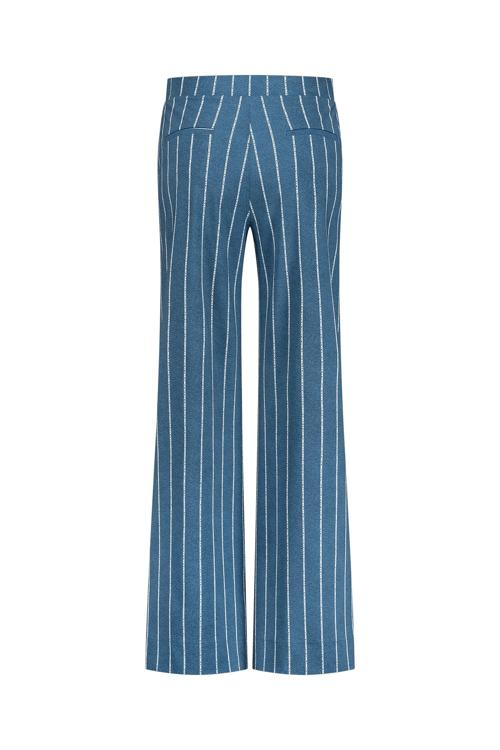 Met de Studio Anneloes Lexie pinstripe trousers voeg je een verfijnd item toe aan je garderobe. Deze broek kenmerkt zich door een recht model en een elegant krijtstreeppatroon in een aantrekkelijke blauwe kleur. Dankzij de tijdloze uitstraling en het subtiele ontwerp biedt deze broek veelzijdigheid voor elke gelegenheid.