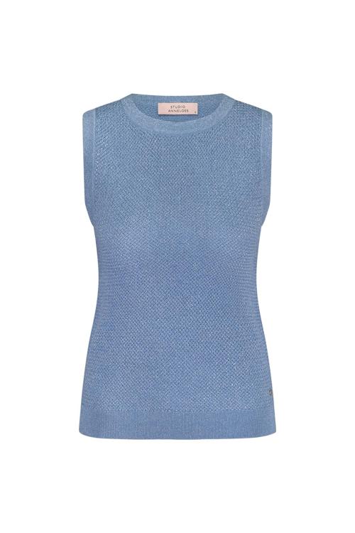 Met de Studio Anneloes Lieske twinset singlet voeg je een tijdloos item toe aan jouw garderobe. Dit mouwloze item heeft een comfortabele pasvorm met een elegante ronde hals. De subtiele, blauwe tint en de fijne textuur zorgen voor een veelzijdige look die gemakkelijk te combineren is.
