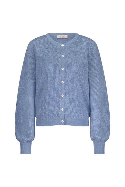 Ontdek de veelzijdigheid van de Studio Anneloes Tommy twinset cardigan, een item dat zowel comfort als elegantie uitstraalt. Dit lichtblauwe vest heeft een ronde hals en lange mouwen, wat het een tijdloos karakter geeft.