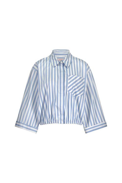 De Studio Anneloes Noleste poplin stripe blouse straalt elegantie en gemak uit. Deze blouse met kraag van een overhemd en lange mouwen combineert een verfijnd ontwerp met praktisch gemak. Het gestreepte patroon van blauw en wit strepen geeft het een frisse, tijdloze uitstraling.