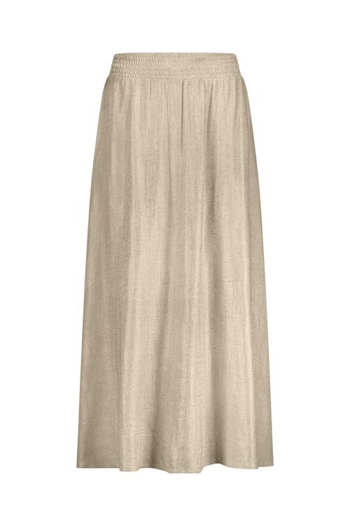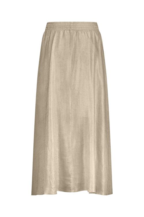 De rok is samengesteld uit duurzame materialen; de buitenkant bestaat uit 30% linnen en 70% viscose, wat zorgt voor een lichte en luchtige draagervaring. De voering van 100% katoen biedt extra comfort en stevigheid.
