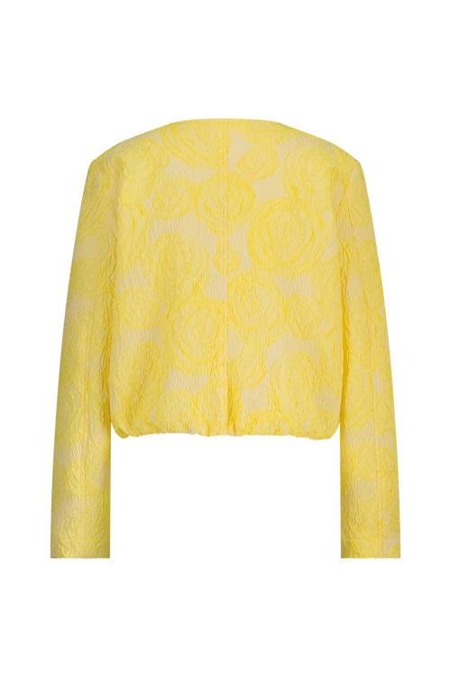 Laat je verleiden door de charmante uitstraling van de Studio Anneloes Wies jacquard jacket. Dit unieke item vangt direct de aandacht met zijn prachtige gele kleur en subtiele bloemenpatroon, perfect voor een vleugje verfijning. De rechte pasvorm en ronde hals zorgen voor een elegante look die je moeiteloos kunt stylen voor zowel zakelijke als casual gelegenheden. Lange mouwen maken dit jasje ideaal voor verschillende seizoenen.