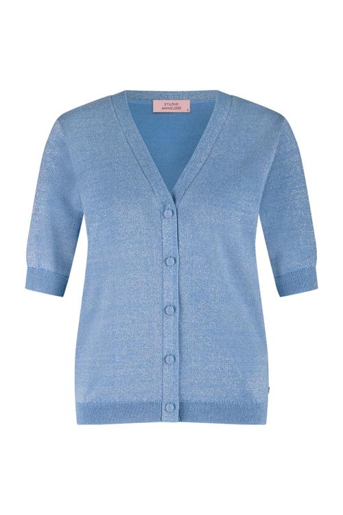 Breng een vleugje verfijning in je garderobe met de Studio Anneloes Sanna cardigan. Deze blauw getinte cardigan valt op door zijn elegante ronde hals en verfijnde knoopsluiting. De korte mouwen maken het een veelzijdig item dat gemakkelijk gecombineerd kan worden met verschillende outfits.