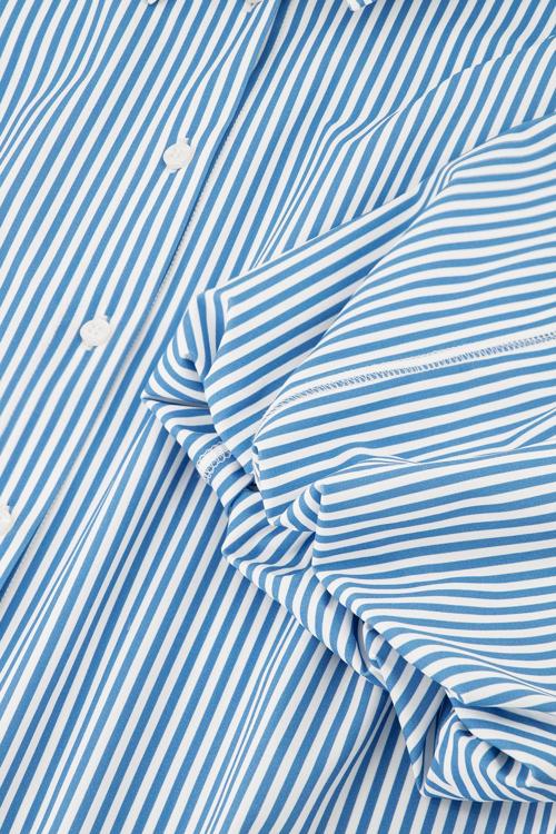 Met de Studio Anneloes Poppy balloon stripe blouse haal je een uniek item in huis dat perfect is voor een veelzijdige garderobe. Deze blouse met ballonmouwen en een klassieke kraag valt op door de verfijnde blauw-witte streepjesprint, wat een frisse uitstraling geeft aan elke outfit.