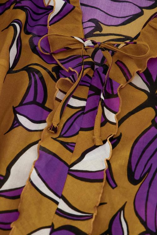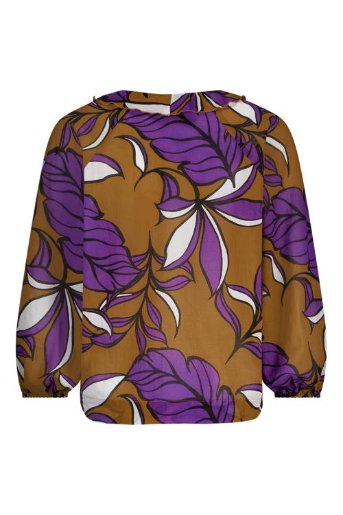 De Studio Anneloes Lola flower blouse is een ware blikvanger dankzij het sierlijke bloemendessin in warme bruine en paarse tinten. Deze blouse met lange mouwen en een ronde hals biedt een verfijnd ontwerp dat zowel elegantie als comfort uitstraalt.