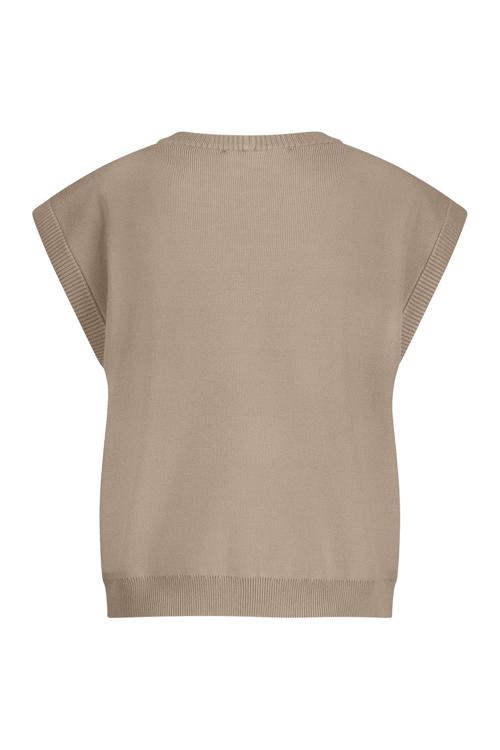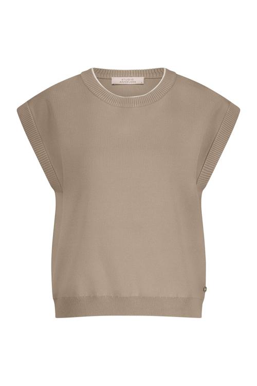 De Studio Anneloes Sarah spencer is een verfijnd item dat je garderobe verrijkt. Met een ronde hals en mouwloze pasvorm is het een veelzijdige aanvulling die je stijl moeiteloos aanvult. De spencer heeft een effen zandkleur, wat zorgt voor een tijdloze uitstraling en makkelijk te combineren is met andere stukken in je collectie.