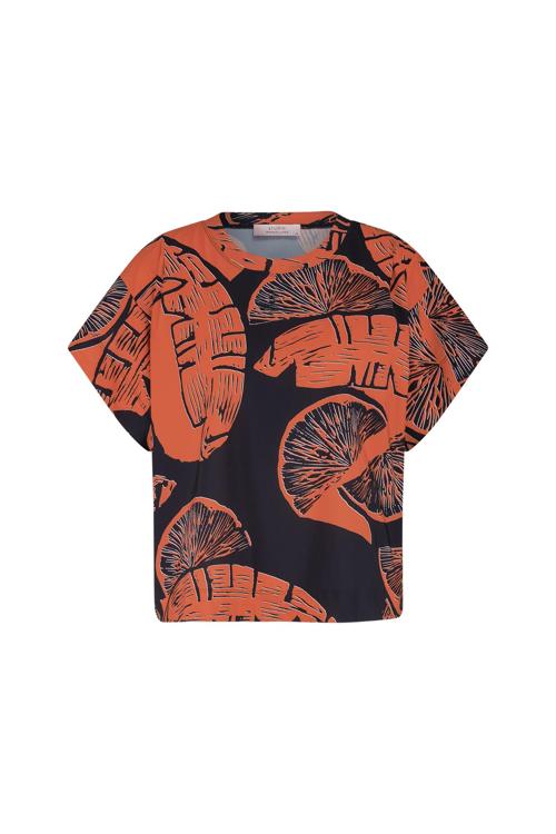 De Studio Anneloes Renske orange top trekt direct de aandacht met zijn levendige oranje kleur en opvallende print. Het item straalt een zelfverzekerde stijl uit die je moeiteloos kunt combineren. De top heeft een comfortabele pasvorm en een elegante V-hals, waardoor het een veelzijdige aanvulling is op je garderobe.