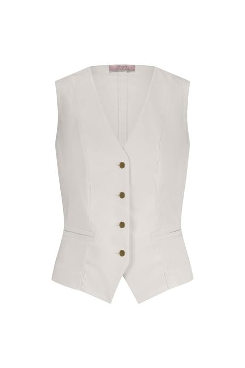 Voel je zelfverzekerd en elegant in het Studio Anneloes Enith gilet. Dit prachtige item combineert een tijdloze uitstraling met moderne details. Met een flatterende pasvorm en een klassieke V-hals straalt het eenvoud en verfijning uit. De subtiele knopenrij voegt een modieuze touch toe aan het geheel, waardoor het een veelzijdige keuze is voor uiteenlopende gelegenheden.