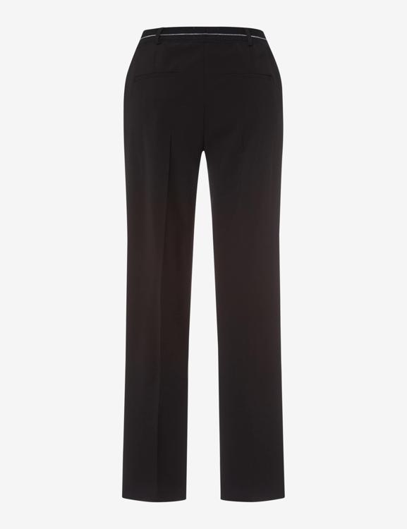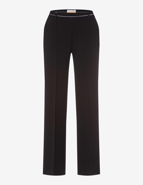 Deze Raphaela by BRAX broek biedt jou de perfecte combinatie van elegantie en dagelijks comfort. De subtiele rechte pasvorm vormt een flatterend silhouet dat direct opvalt. De effen zwarte kleur maakt het eenvoudig om dit item te combineren met verschillende tops en jassen uit je garderobe.