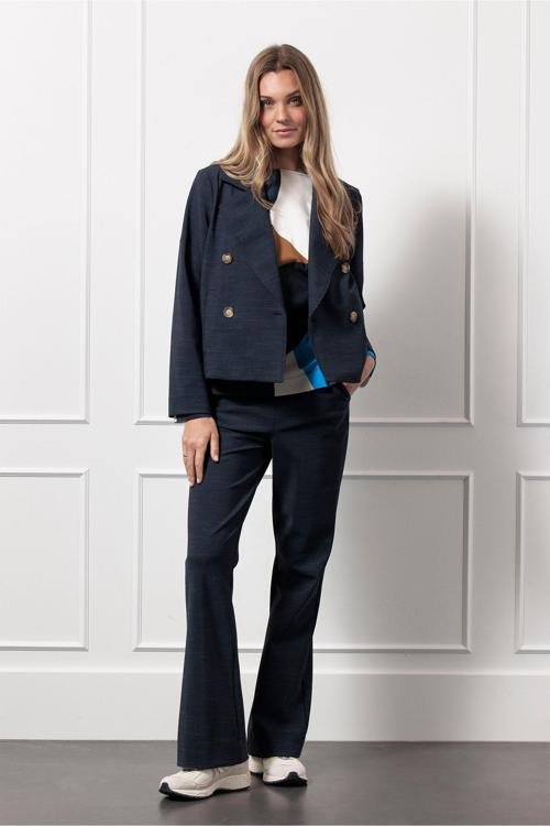Deze stijlvolle Studio Anneloes Flair bnd denim trousers zijn precies wat je zoekt als je houdt van een comfortabele pasvorm die toch elegant oogt. Met hun subtiele, effen diepblauwe tint en vloeiende flair in de pijpen, voegen deze broeken net dat beetje extra toe aan je garderobe.