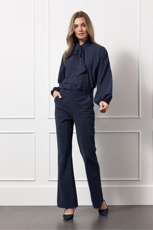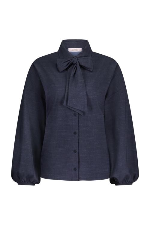 Ervaar de charme van de Studio Anneloes Maxine denim blouse. Dit item biedt je de ideale mix van comfort en elegantie. Met een klassieke kraag en stijlvolle strik aan de voorzijde straalt deze blouse iets bijzonders uit. De lange mouwen met subtiele plooien voegen een speels detail toe, terwijl de tijdloze, donkerblauwe kleur veelzijdigheid en verfijning uitstraalt.