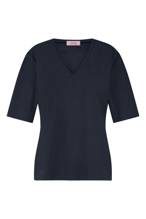 Het Studio Anneloes Roller shirt is een veelzijdig item dat moeiteloos een plek vindt in je garderobe. Dit topje heeft een elegante V-hals en driekwart mouwen, wat het ideaal maakt voor verschillende gelegenheden. De diepblauwe kleur zorgt voor een tijdloze uitstraling en de comfortabele pasvorm biedt de juiste balans tussen stijl en gemak.
