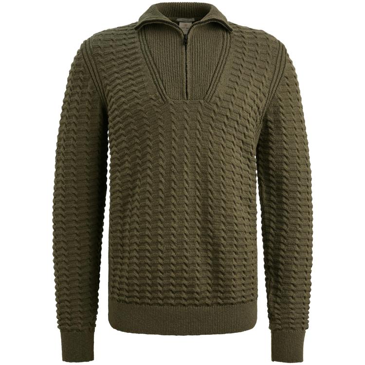 Deze Cast Iron trui is een verfijnd item dat jouw garderobe moeiteloos aanvult. Met een tijdloze olijfgroene kleur en een uniek geweven patroon, ben je verzekerd van een aantrekkelijke uitstraling. De comfortabele pasvorm en een subtiele halve rits maken het de perfecte keuze voor zowel vrije tijd als kantoor. Denk aan een frisse herfstdag wanneer je deze trui draagt tijdens een wandeling of een lunchafspraak.