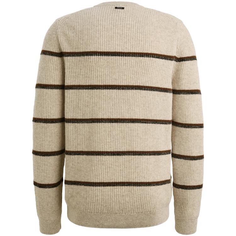 Deze Vanguard trui met ronde hals geeft je dagelijkse outfit een verfijnde twist. Het ingetogen beige gecombineerd met opvallende bruine strepen zorgt voor een subtiele, maar krachtige look. Dankzij de aansluitende pasvorm voel je je zelfverzekerd, of je nu in een zakelijke omgeving bent of ontspant in het weekend.