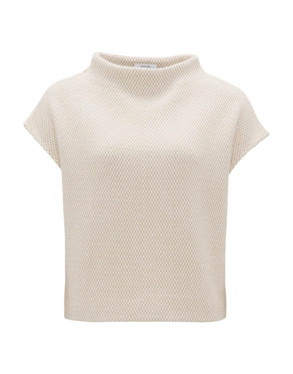 De OPUS Sweater Gofir is een tijdloos item dat je garderobe een frisse impuls geeft. Met zijn speelse structuur en warme beige tint straalt deze sweater verfijning uit. De hoge ronde hals en korte mouwen maken het tot een veelzijdige keuze, ideaal voor verschillende gelegenheden.
