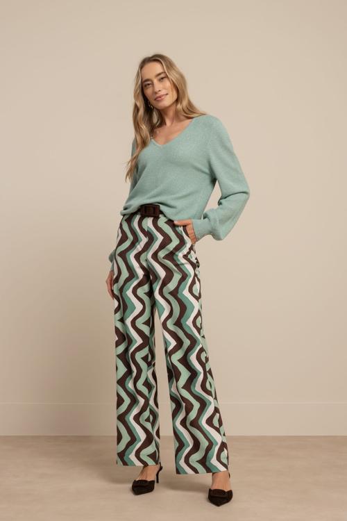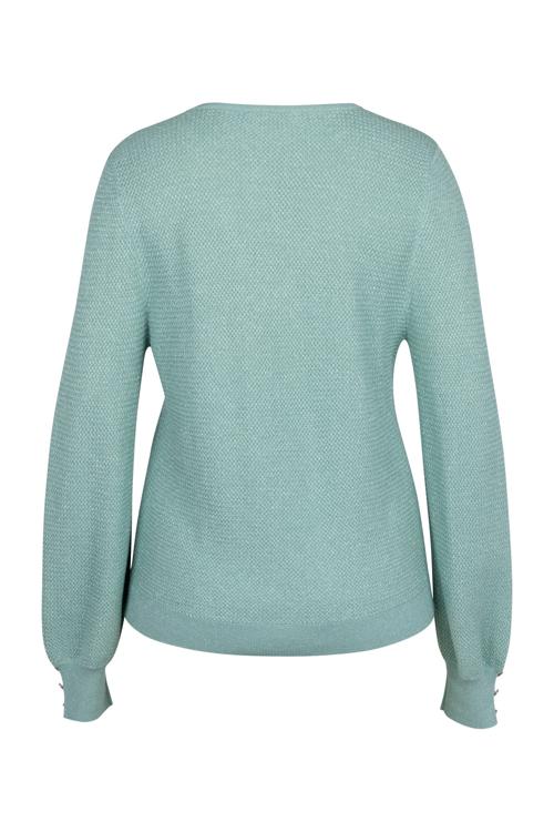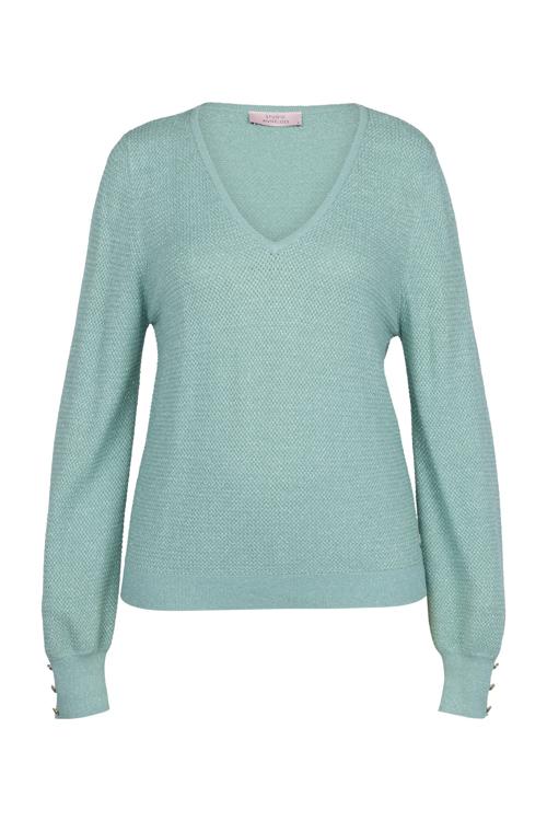 De Studio Anneloes Nika structure pullover is een verfijnd item dat moeiteloos je garderobe verrijkt. Met een zachte V-hals en lange mouwen biedt deze trui een elegante uitstraling. De subtiele structuur en knoopdetails op de manchetten voegen een extra dimensie toe aan het ontwerp. Dit item heeft een comfortabele pasvorm en is uitgevoerd in een frisse mintgroene kleur, perfect voor diverse combinaties.