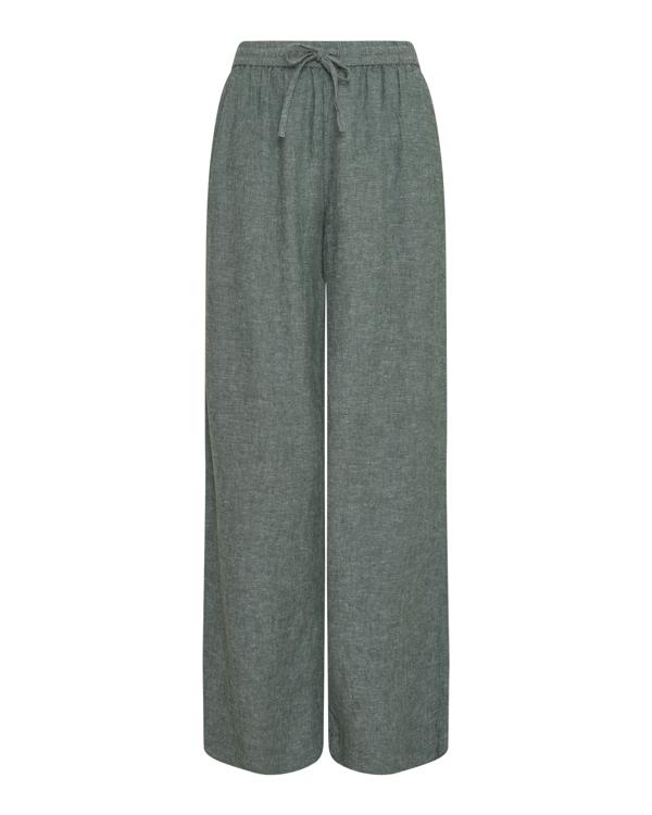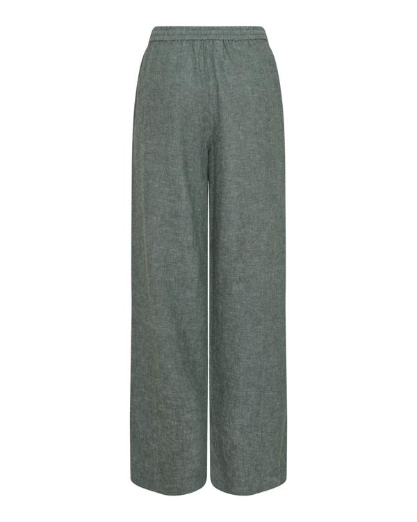 De broek is gemaakt van 55% linnen en 45% viscose, waardoor een lichte en ademende ervaring is gegarandeerd. De verfijnde constructie biedt niet alleen draagcomfort, maar ook een unieke touch die je look direct verrijkt.