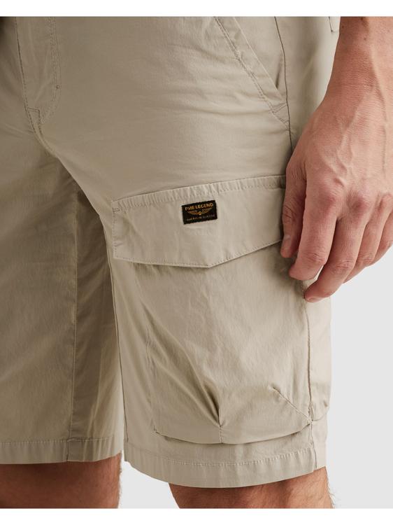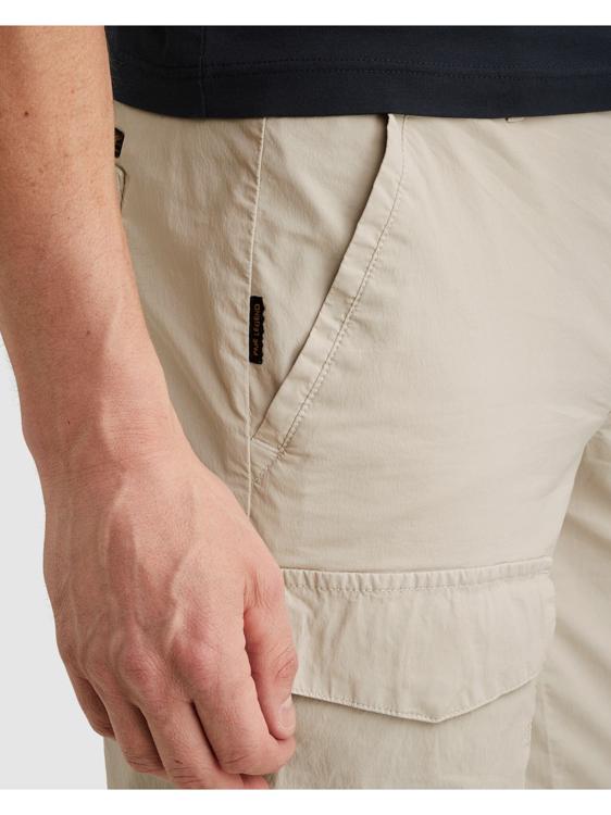 Deze beige cargo shorts geven je direct een stoere uitstraling. Het item heeft een comfortabele pasvorm en valt op door de stevige klepzakken, afgewerkt met een kleine zwarte logopatch.